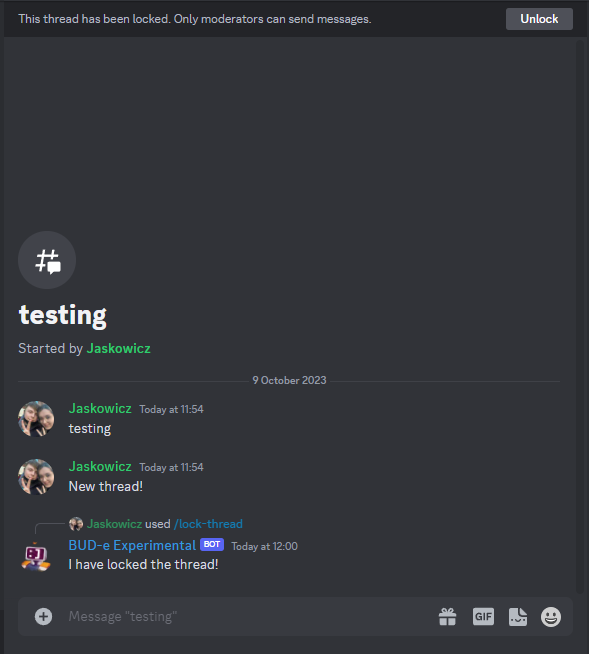 If all went well, you'll see that the bot has successfully created a thread!